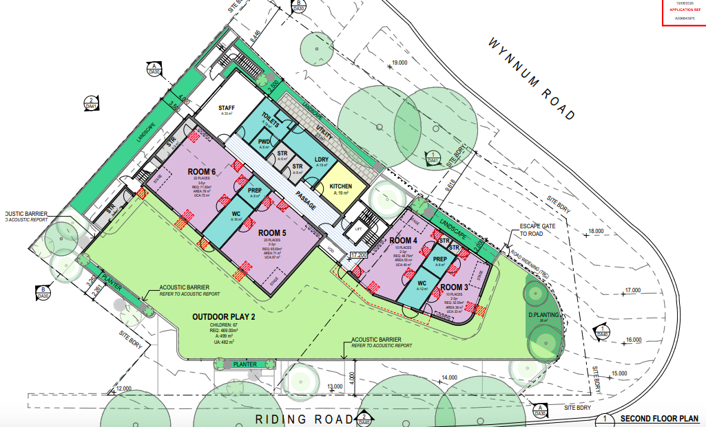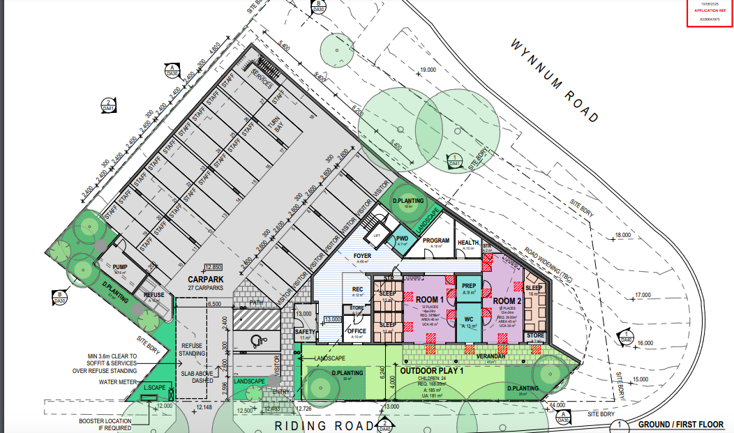 The childcare centre would have 8 playrooms and three outdoor play areas, with 27 car parks.