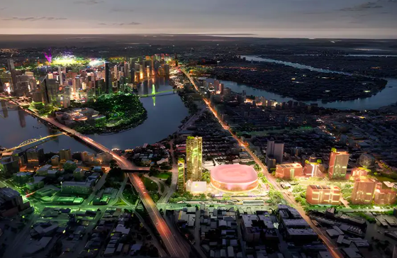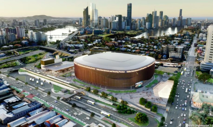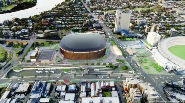The project would involve the creation of a new 17,000 seat indoor arena, with integrated residential, retail, hospitality and public space components on the 9-hectare parcel next to the Cross River Rail infrastructure.